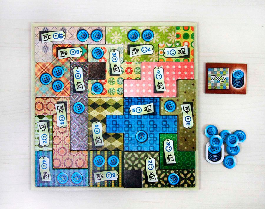 El objetivo en Patchwork es construir la mejor colcha posible en tu tablero personal 🪡. Para ello, tendrás que comprar piezas y colocarlas optimizando el espacio. Cada hueco vacío al final resta puntos, mientras que los botones suman. Esto genera una tensión constante entre gastar recursos o ahorrar. En mi experiencia, no se trata solo de llenar espacios, sino de hacerlo de forma inteligente. Cada decisión cuenta. Y muchas veces una mala elección se paga al final.